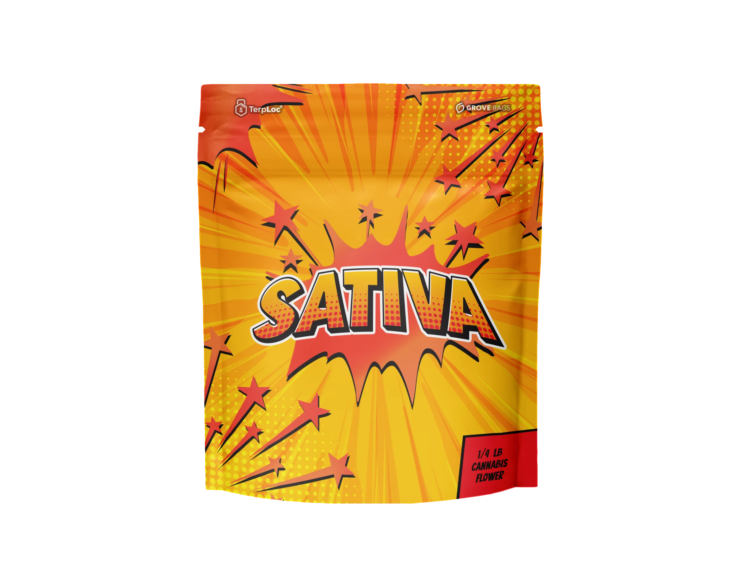 Introducing our TerpLoc® Velvet Soft Touch Matte Quarter Pound CR Bags. These feature velvet soft touch matte that feels like a million bucks and will give your product the unique high end feel that it deserves. Also includes a child resistant zipper. Easily identify the type of buds in your bag through its vibrant colors and large, comic-book typeface.